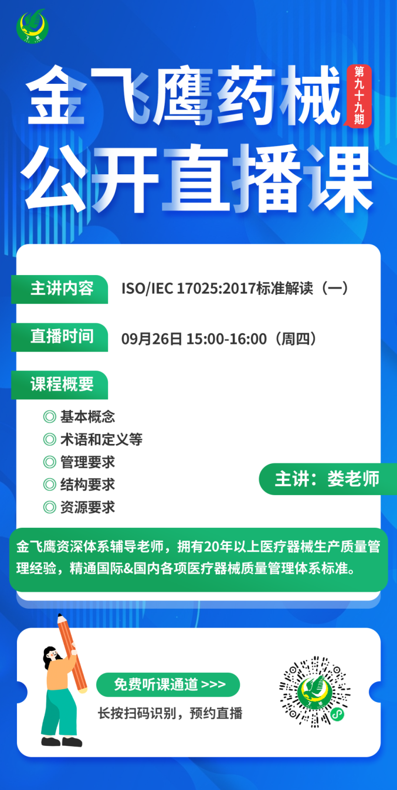 金飛鷹直播培訓(xùn),是每周一次的固定培訓(xùn)欄目,優(yōu)選金飛鷹國內(nèi)外資深注冊/項(xiàng)目老師定期為大家講解醫(yī)療器械注冊相關(guān)知識(shí),解答大家在醫(yī)療器械注冊過程中的諸多疑問。