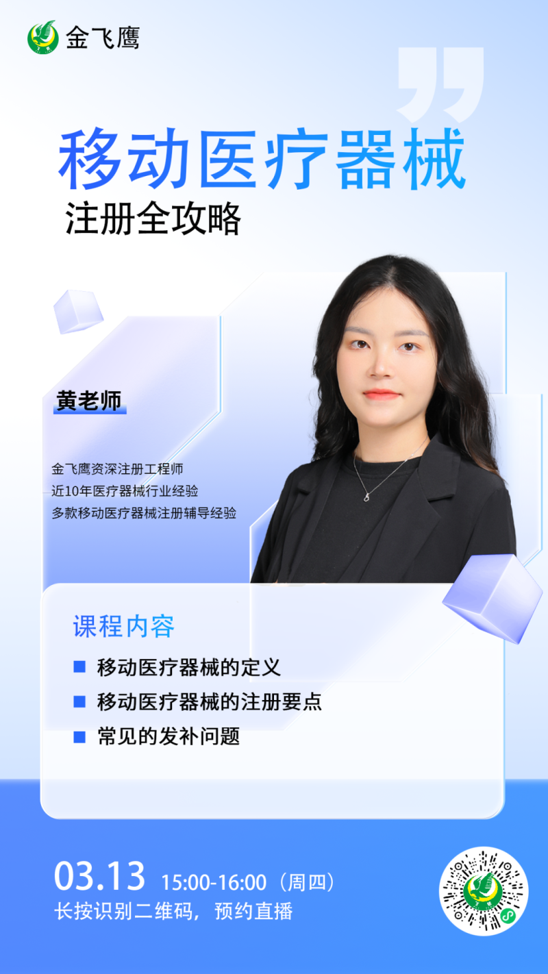 金飛鷹直播培訓,是每周一次的固定培訓欄目,優(yōu)選金飛鷹國內外資深注冊/項目老師定期為大家講解醫(yī)療器械注冊相關知識,解答大家在醫(yī)療器械注冊過程中的諸多疑問。