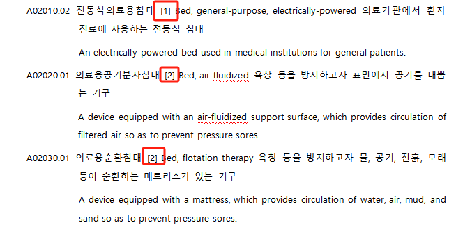 1. 查閱Regulation on Medical Device Groups and Class by Group的Attachment,法規(guī)中規(guī)定了分類規(guī)則以及產(chǎn)品的代碼和風(fēng)險(xiǎn)等級(jí),可以根據(jù)產(chǎn)品定義/用途等判斷產(chǎn)品的等級(jí),我們隨附了示例圖,紅框的數(shù)字為產(chǎn)品的風(fēng)險(xiǎn)等級(jí)。 2. 在韓國(guó)已注冊(cè)產(chǎn)品的數(shù)據(jù)庫(kù)(可聯(lián)系我們獲取鏈接)中,用產(chǎn)品名稱(英文/韓文)進(jìn)行檢索,查找類似產(chǎn)品在MFDS中的分類。 上述方法需一并查詢以確定產(chǎn)品在韓國(guó)的分類。當(dāng)然,您也可以直接聯(lián)系我們幫您查詢~
