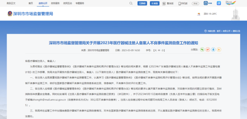 3月9日,深圳市市場(chǎng)監(jiān)督管理局官網(wǎng)發(fā)布《關(guān)于開(kāi)展2023年醫(yī)療器械注冊(cè)人備案人不良事件監(jiān)測(cè)自查工作的通知》,具體內(nèi)容如下: