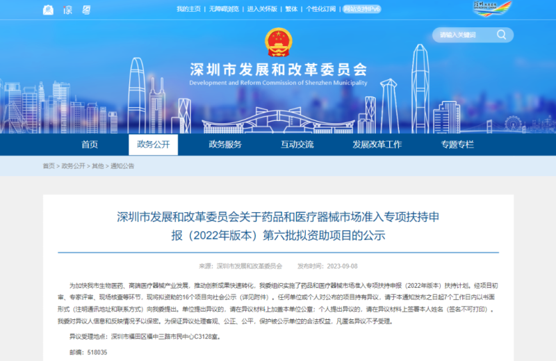 此前,深圳發(fā)改委官網(wǎng)發(fā)布過《深圳市藥品和醫(yī)療器械市場準入專項扶持申報(2022年版本)第五批擬資助項目》(共有38個項目),大家可點擊右側鏈接回顧→深圳藥品和醫(yī)療器械市場準入專項資助項目