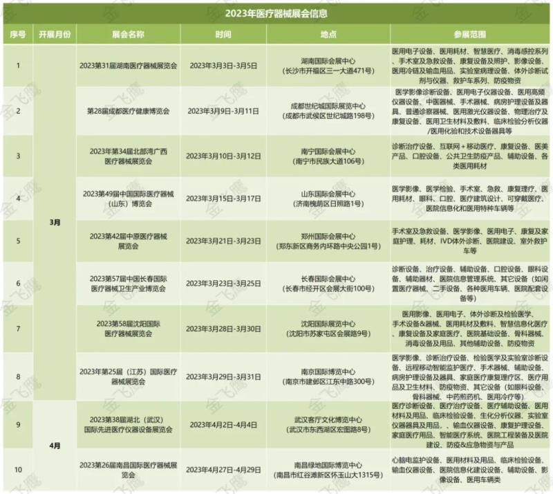 因此,本期文章小編匯總了一份2023年部分主要醫(yī)療器械展會(huì)信息(以上半年居多),覺(jué)得有用別忘收藏并點(diǎn)個(gè)“在看”分享給更多好友哦!預(yù)祝各醫(yī)械企業(yè)都能在展會(huì)上捕獲滿滿商機(jī)!后續(xù)我們還會(huì)更新更多展會(huì)信息,記得持續(xù)關(guān)注哦~