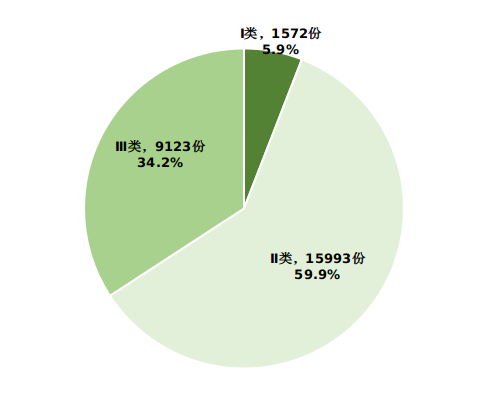 ? 附圖:涉及北京市醫(yī)療器械注冊人、備案人、進口醫(yī)療器械代理人的報告按器械管理類別統(tǒng)計情況
