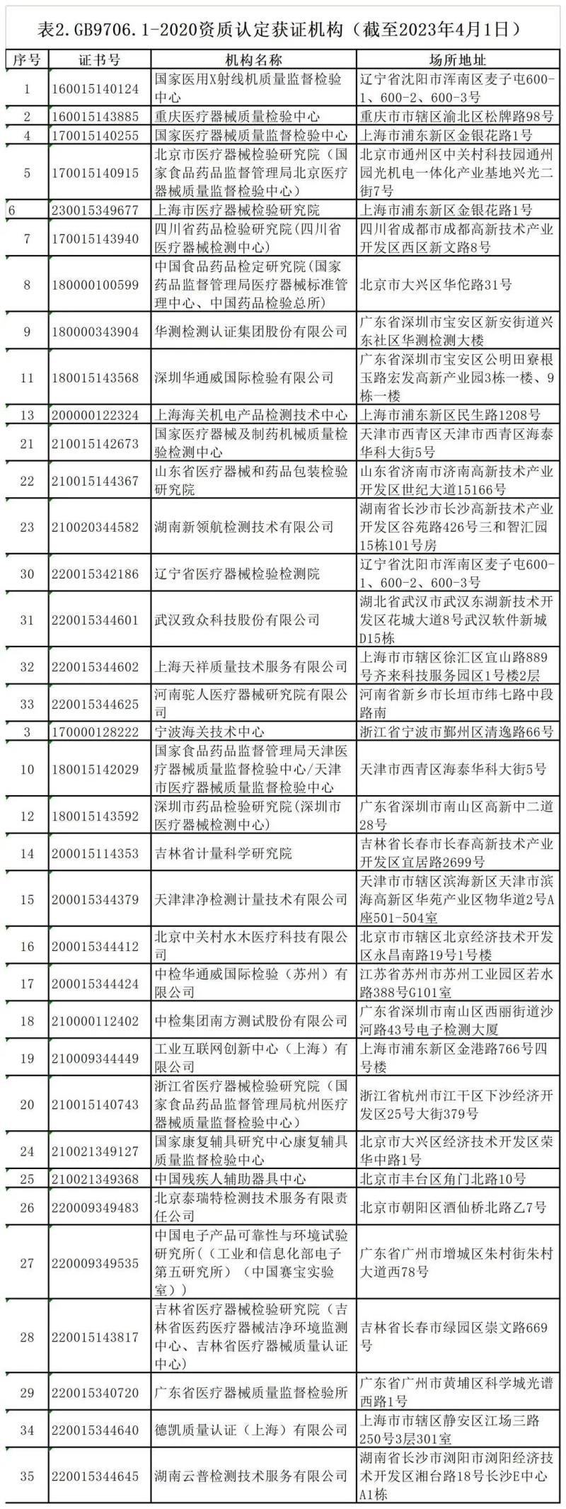 近日,中檢院官網(wǎng)發(fā)布《關(guān)于新版GB 9706系列標(biāo)準(zhǔn)檢驗(yàn)資質(zhì)認(rèn)定有關(guān)情況的公告(2023年4月)》(以下簡(jiǎn)稱《公告》),公布了截至2023年4月1日,75個(gè)新版GB 9706系列標(biāo)準(zhǔn)檢驗(yàn)資質(zhì)認(rèn)定情況和GB 9706.1-2020、YY 9706.102-2021獲證機(jī)構(gòu)信息(詳見文末附件),其中GB 9706.1-2020資質(zhì)認(rèn)定獲證機(jī)構(gòu)具體如下:
