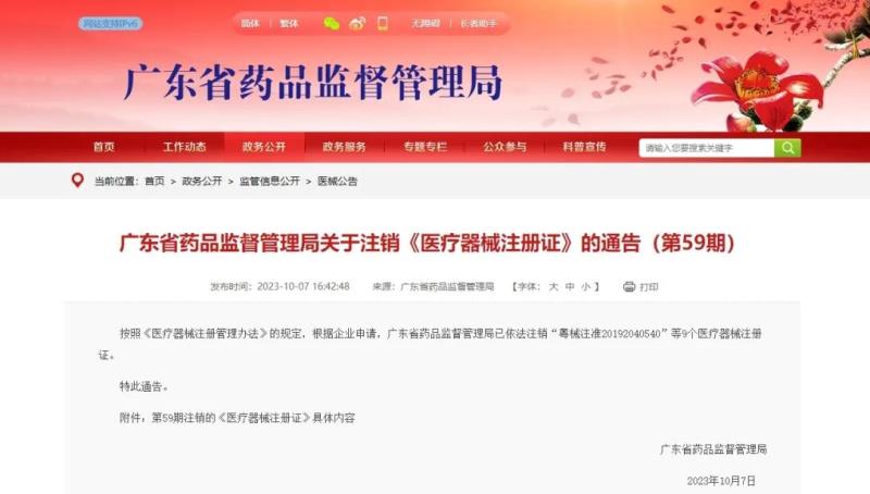 廣東藥監(jiān)局:以下醫(yī)療器械注冊證已被注銷!