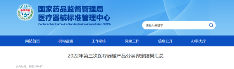 10月27日,國(guó)家藥監(jiān)局醫(yī)療器械標(biāo)管中心發(fā)布2022年第三次醫(yī)療器械產(chǎn)品分類界定結(jié)果匯總,前兩次分類界定結(jié)果請(qǐng)點(diǎn)擊下方鏈接查看 ?