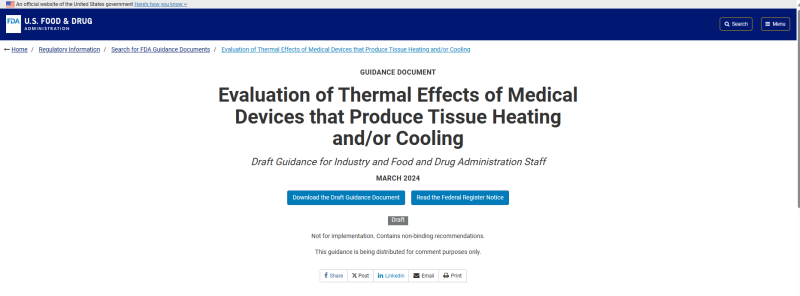 FDA(美國食品藥品監(jiān)督管理局)近日發(fā)布了一份重要的指南草案,專門針對那些能夠產(chǎn)生組織加熱和/或冷卻效應(yīng)的醫(yī)療器械的熱效應(yīng)評估進行了詳細(xì)闡述。