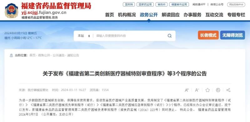 近日,福建省藥監(jiān)局發(fā)布《福建省第二類創(chuàng)新醫(yī)療器械特別審查程序(試行)》《福建省第二類醫(yī)療器械優(yōu)先審批程序(試行)》《福建省第二類醫(yī)療器械應(yīng)急審批程序(試行)》3個(gè)程序。