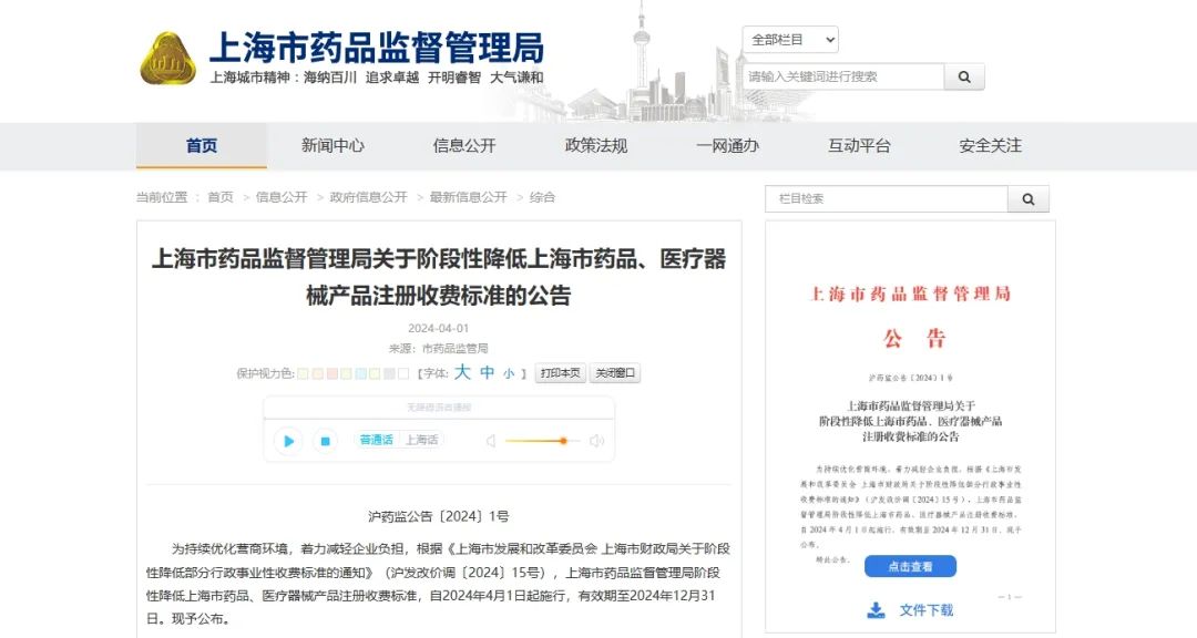 4月1日,上海市藥監(jiān)局發(fā)布公告稱,階段性降低上海市藥品、醫(yī)療器械產(chǎn)品注冊(cè)收費(fèi)標(biāo)準(zhǔn),自2024年4月1日起施行,有效期至2024年12月31日。調(diào)整后的收費(fèi)標(biāo)準(zhǔn)如下: