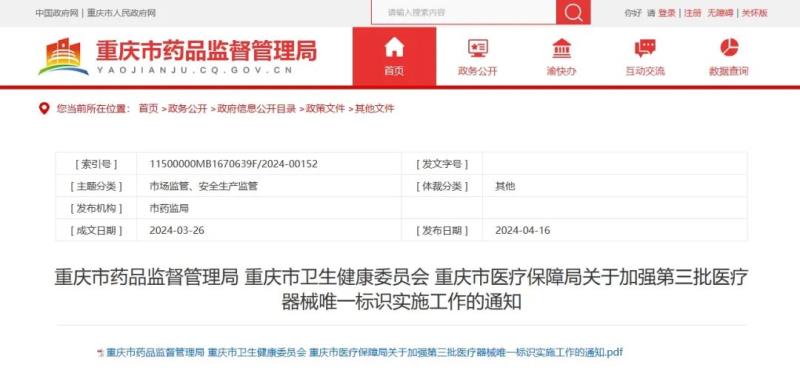 隨著第三批醫(yī)療器械唯一標(biāo)識(shí)實(shí)施日期的臨近,近日,重慶市藥監(jiān)局發(fā)布《關(guān)于加強(qiáng)第三批醫(yī)療器械唯一標(biāo)識(shí)實(shí)施工作的通知》,其中提到,按照《國(guó)家藥監(jiān)局國(guó)家衛(wèi)生健康委 國(guó)家醫(yī)保局關(guān)于做好第三批實(shí)施醫(yī)療器械唯一標(biāo)識(shí)工作的公告》要求,對(duì)列入第三批實(shí)施產(chǎn)品目錄的103個(gè)醫(yī)療器械品種,注冊(cè)人應(yīng)當(dāng)按照時(shí)限要求有序開(kāi)展相關(guān)工作。