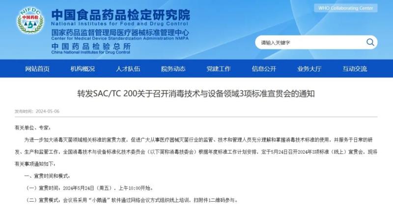 5月6日,國家藥監(jiān)局醫(yī)療器械標準管理中心轉(zhuǎn)發(fā)了《SAC/TC 200關(guān)于召開消毒技術(shù)與設(shè)備領(lǐng)域3項標準宣貫會的通知》,其中提到,全國消毒技術(shù)與設(shè)備標準化技術(shù)委員會擬于2024年5月24日舉辦相關(guān)標準宣貫培訓(xùn),培訓(xùn)內(nèi)容為GB 18279-2023《醫(yī)療保健產(chǎn)品滅菌 環(huán)氧乙烷 醫(yī)療器械滅菌過程的開發(fā)、確認和常規(guī)控制的要求》等3項標準解讀,具體如下: