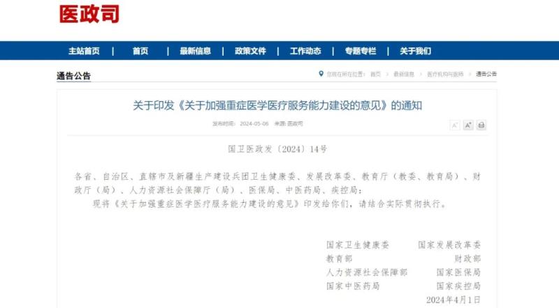 近日,大規(guī)模設(shè)備更新工作加速推進,醫(yī)療器械行業(yè)再迎利好政策。5月6日,國家衛(wèi)健委等八部門印發(fā)《關(guān)于加強重癥醫(yī)學(xué)醫(yī)療服務(wù)能力建設(shè)的意見》的通知。意見提出,到2025年末,全國重癥醫(yī)學(xué)床位達到15張/10萬人,可轉(zhuǎn)換重癥醫(yī)學(xué)床位達到10張/10萬人,相關(guān)醫(yī)療機構(gòu)綜合ICU床醫(yī)比達到1:0.8,床護比達到1:3。到2027年末,全國重癥醫(yī)學(xué)床位達到18張/10萬人,可轉(zhuǎn)換重癥醫(yī)學(xué)床位達到12張/10萬人,重癥醫(yī)學(xué)醫(yī)療服務(wù)資源有效擴容,區(qū)域布局更加均衡,??品?wù)能力顯著提升。