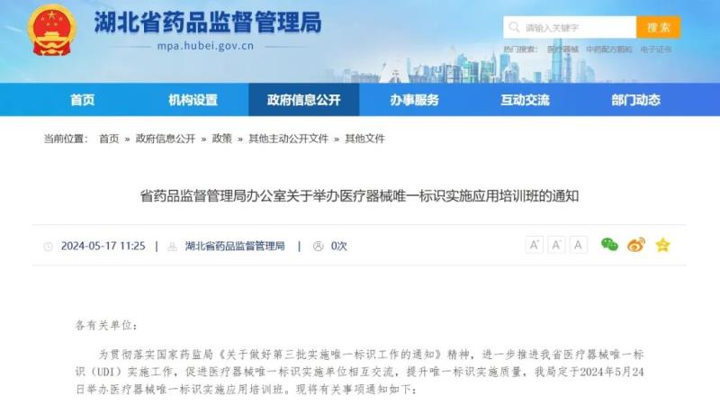 5月17日,湖北省藥監(jiān)局發(fā)布通知稱,該局定于2024年5月24日舉辦醫(yī)療器械唯一標識實施應(yīng)用培訓(xùn)班。相關(guān)培訓(xùn)信息具體如下: