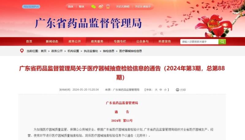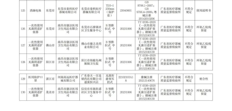 5月20日,廣東省藥監(jiān)局發(fā)布《關(guān)于醫(yī)療器械抽查檢驗(yàn)信息的通告(2024年第3期,總第88期)》(以下簡稱《通告》),《通告》顯示,該局共抽檢了130批次產(chǎn)品,共有6批次不合格,不合格產(chǎn)品包括消融電極、一次性使用無菌陰道擴(kuò)張器、醫(yī)用防護(hù)口罩,具體如下: