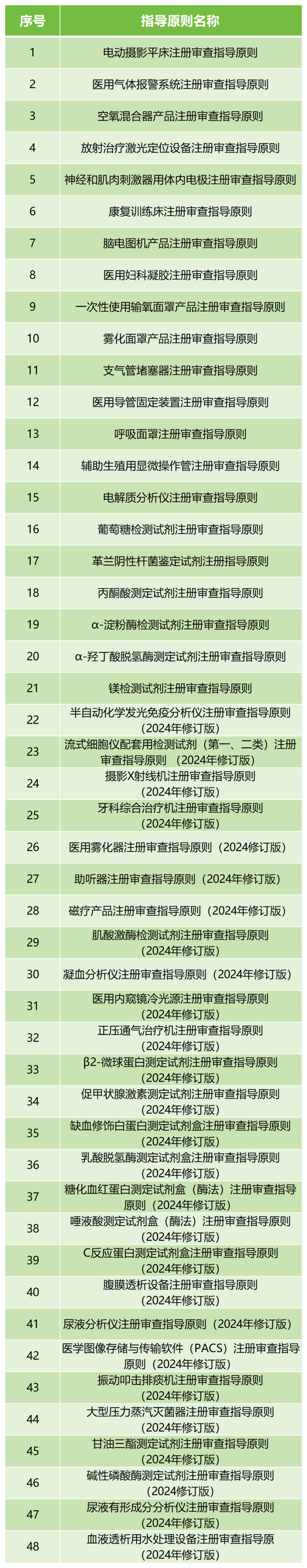 5月27日,國家藥監(jiān)局器審中心發(fā)布《康復(fù)訓(xùn)練床注冊審查指導(dǎo)原則》《霧化面罩產(chǎn)品注冊審查指導(dǎo)原則》《神經(jīng)和肌肉刺激器用體內(nèi)電極注冊審查指導(dǎo)原則》等48項注冊審查指導(dǎo)原則,其中21項為新制定,27項為修訂,修訂了指導(dǎo)原則的有牙科綜合治療機、醫(yī)用霧化器、助聽器、磁療產(chǎn)品、PACS軟件等產(chǎn)品,具體明細如下: