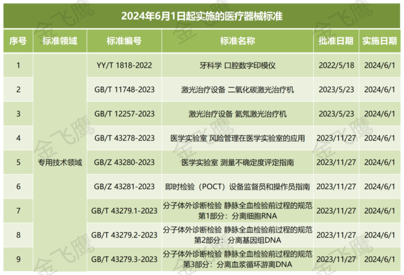 6月第一個(gè)工作日,又來跟大家盤點(diǎn)一波醫(yī)療器械標(biāo)準(zhǔn)實(shí)施動(dòng)態(tài):自2024年6月1日起正式實(shí)施的共有9項(xiàng)醫(yī)療器械標(biāo)準(zhǔn),其中包括YY/T 1818-2022《牙科學(xué) 口腔數(shù)字印模儀》、GB/T 11748-2023《激光治療設(shè)備 二氧化碳激光治療機(jī)》、GB/T 12257-2023《激光治療設(shè)備 氦氖激光治療機(jī)》等,具體明細(xì)如下: