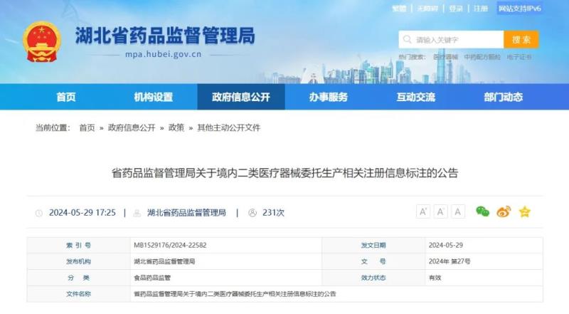 3. 對省內(nèi)已核發(fā)的涉及境內(nèi)委托生產(chǎn)的注冊證及批件,若未按照上述要求標(biāo)注相關(guān)信息,我局將于2024年9月1日前完成標(biāo)注,并及時發(fā)布修改后注冊證和批件清單,企業(yè)可根據(jù)修改清單在電子證書平臺(https://zsgs.hubyjj.cn:8096/)下載打印。