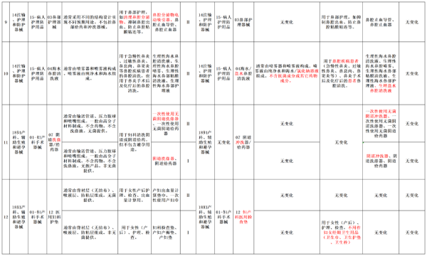 本次調(diào)整意見對20類醫(yī)療器械產(chǎn)品進行了產(chǎn)品描述、預(yù)期用途或管理類別的調(diào)整,我們以圖片形式將其展示如下(點擊圖片可放大查看):