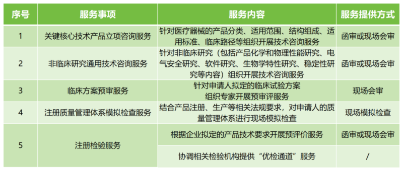 廣州市醫(yī)療器械創(chuàng)新技術(shù)服務(wù)事項包括以下五種類型: