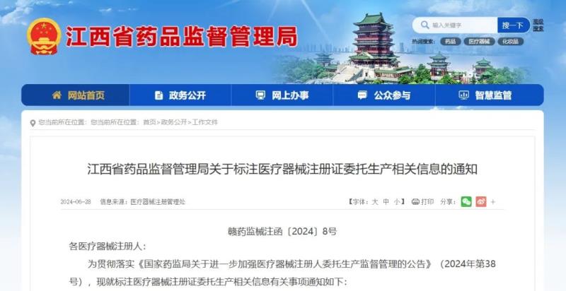 近日,繼江蘇省、湖北省、廣東省、湖南省、廣西壯族自治區(qū)、云南省、吉林省(具體政策可點(diǎn)擊右側(cè)鏈接回顧→醫(yī)療器械委托生產(chǎn)信息標(biāo)注)后,江西省藥監(jiān)局也發(fā)布了《關(guān)于標(biāo)注醫(yī)療器械注冊(cè)證委托生產(chǎn)相關(guān)信息的通知》,相關(guān)事項(xiàng)具體如下: