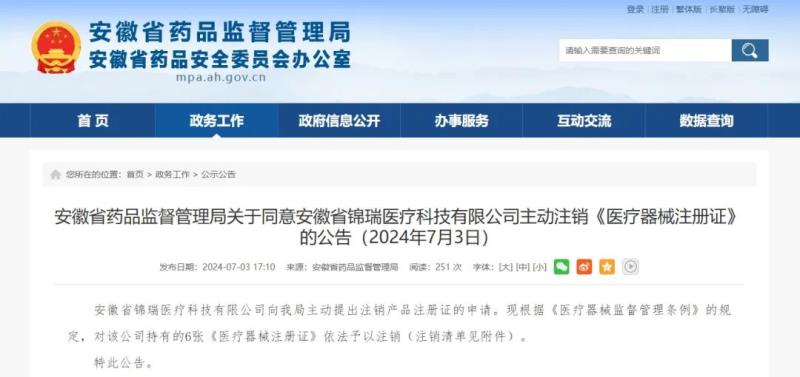 近日,安徽省藥監(jiān)局發(fā)布公告稱,安徽省錦瑞醫(yī)療科技有限公司向該局主動(dòng)提出注銷產(chǎn)品注冊(cè)證的申請(qǐng)。根據(jù)《醫(yī)療器械監(jiān)督管理?xiàng)l例》的規(guī)定,對(duì)該公司持有的6張《醫(yī)療器械注冊(cè)證》依法予以注銷。我們通過查看附件發(fā)現(xiàn),此次注銷的產(chǎn)品均為醫(yī)用口罩,具體明細(xì)如下: