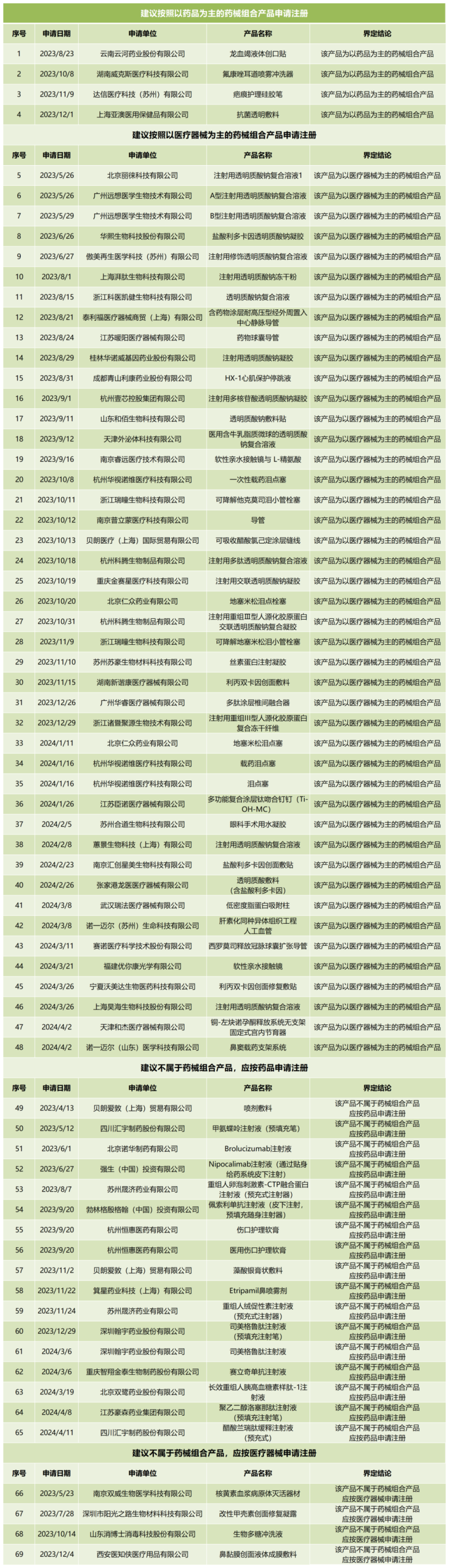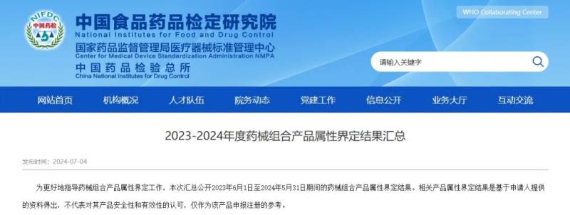 近日,國(guó)家藥監(jiān)局醫(yī)療器械標(biāo)準(zhǔn)管理中心發(fā)布《2023-2024年度藥械組合產(chǎn)品屬性界定結(jié)果匯總》,匯總公開了2023年6月1日至2024年5月31日期間的藥械組合產(chǎn)品屬性界定結(jié)果,具體如下: