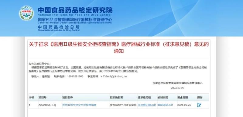 近日,國(guó)家藥監(jiān)局醫(yī)療器械標(biāo)準(zhǔn)管理中心發(fā)布《醫(yī)用Ⅱ級(jí)生物安全柜核查指南》醫(yī)療器械行業(yè)標(biāo)準(zhǔn)的征求意見(jiàn)稿,用以代替YY/T 1540-2017,并向社會(huì)公開(kāi)征求意見(jiàn)。