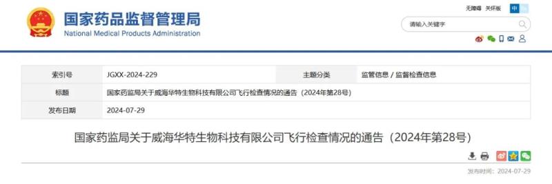 7月29日,國家藥監(jiān)局發(fā)布通告稱,該局組織檢查組對威海**生物科技有限公司進(jìn)行飛行檢查,發(fā)現(xiàn)該企業(yè)質(zhì)量管理體系主要存在以下缺陷: