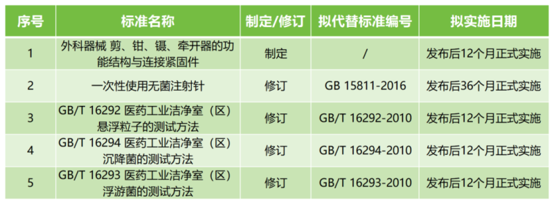 8月5日,國家藥監(jiān)局醫(yī)療器械標(biāo)準(zhǔn)管理中心發(fā)布幾則關(guān)于征求醫(yī)療器械國家標(biāo)準(zhǔn)意見的通知,通知顯示,近期共有5項標(biāo)準(zhǔn)形成了征求意見稿,具體明細如下:
