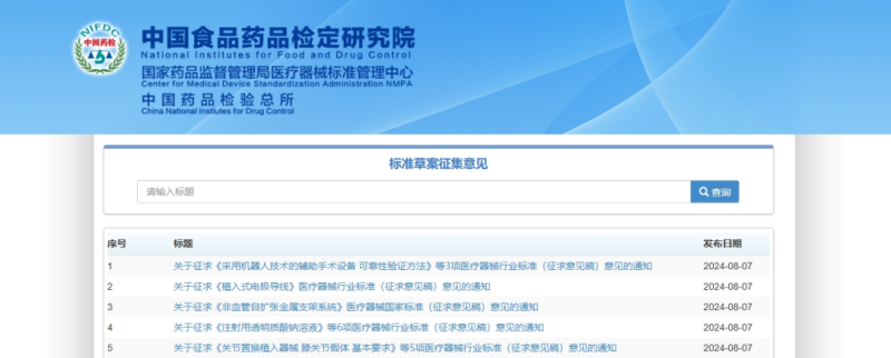 8月7日,國家藥監(jiān)局醫(yī)療器械標準管理中心發(fā)布幾則關于征求醫(yī)療器械行業(yè)標準意見的通知,通知顯示,近期共有16項標準形成了征求意見稿,具體明細如下: