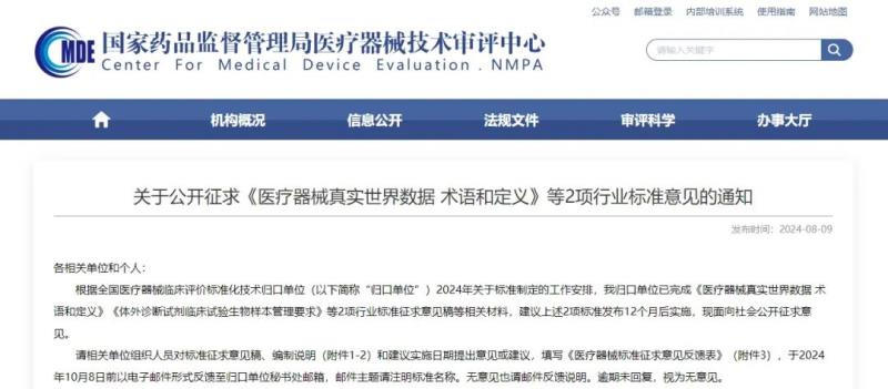 近日,國家藥監(jiān)局器審中心發(fā)布《醫(yī)療器械真實世界數(shù)據(jù) 術(shù)語和定義》《體外診斷試劑臨床試驗生物樣本管理要求》等2項行業(yè)標(biāo)準(zhǔn)征求意見稿等相關(guān)材料,并向社會公開征求意見。
