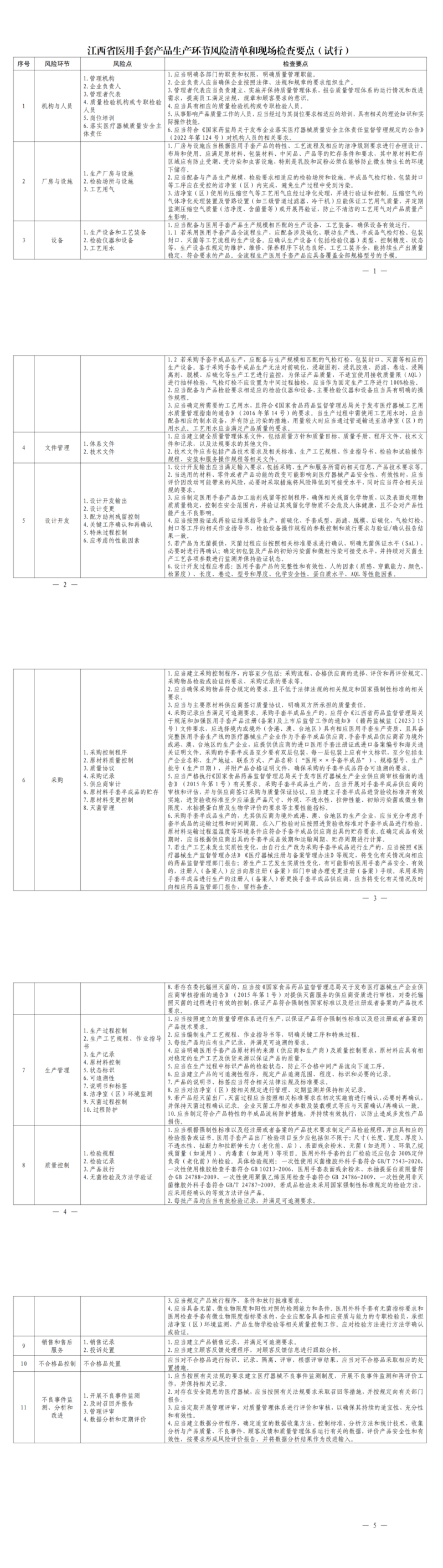8月14日,江西省藥監(jiān)局發(fā)布《江西省醫(yī)用手套產(chǎn)品生產(chǎn)環(huán)節(jié)風(fēng)險清單和現(xiàn)場檢查要點(試行)》(以下簡稱《檢查要點》),作為各級藥品監(jiān)督管理部門開展醫(yī)用手套產(chǎn)品監(jiān)督檢查工作(包括質(zhì)量管理體系審查、專項監(jiān)督檢查、日常監(jiān)督檢查等)和注冊核查工作的執(zhí)行依據(jù)。