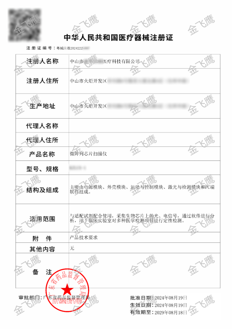 8月19日,金飛鷹輔導(dǎo)中山一家企業(yè)成功取得【微陣列芯片掃描儀】的注冊(cè)證,老規(guī)矩,本期文章我們跟大家分享一下此類產(chǎn)品注冊(cè)的相關(guān)事項(xiàng)。