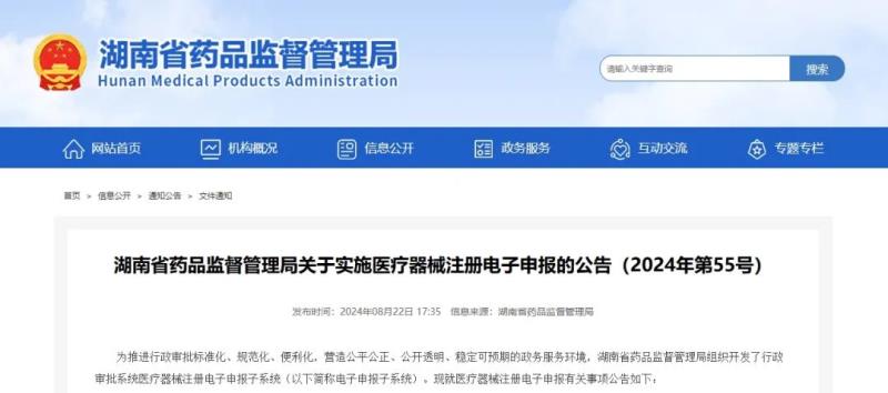 8月22日,湖南藥監(jiān)局發(fā)布《關(guān)于實施醫(yī)療器械注冊電子申報的公告(2024年第55號)》,具體事項如下: