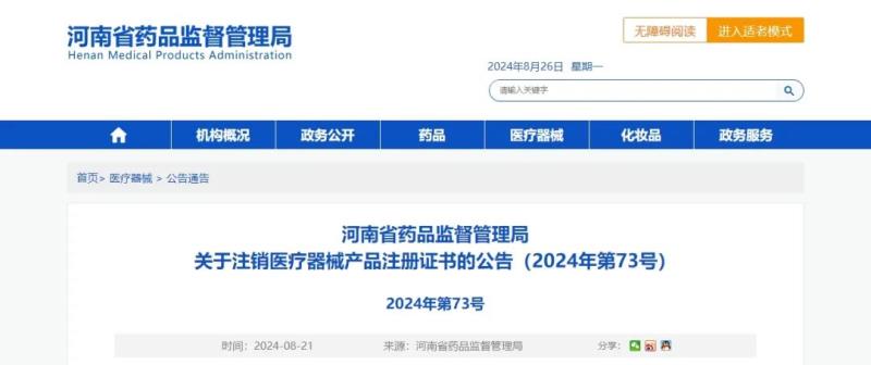 近日,河南省藥監(jiān)局發(fā)布公告稱,按照《醫(yī)療器械監(jiān)督管理條例》規(guī)定,根據(jù)企業(yè)申請,該局已注銷河南高遠醫(yī)療器械有限公司、河南亞都實業(yè)有限公司2家企業(yè)共10個產(chǎn)品的醫(yī)療器械注冊證,具體明細如下: