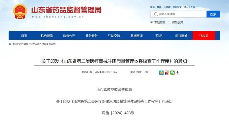 8月28日,山東省藥監(jiān)局發(fā)布新版《山東省第二類(lèi)醫(yī)療器械注冊(cè)質(zhì)量管理體系核查工作程序》(以下簡(jiǎn)稱(chēng)《工作程序》),并宣布自發(fā)布之日(2024年8月28日)起施行。