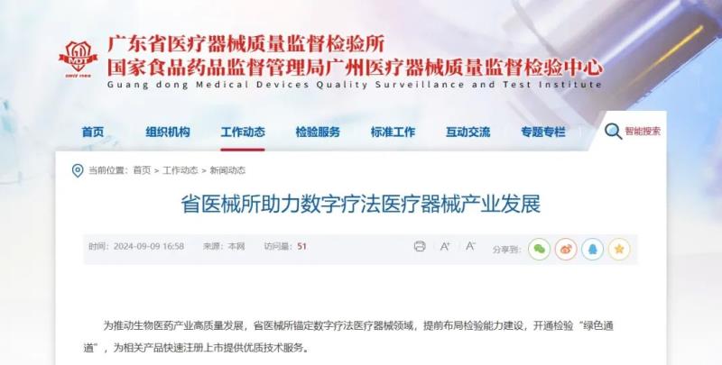 近日,廣東省醫(yī)療器械質量監(jiān)督檢驗所(以下簡稱“省醫(yī)械所”)發(fā)布動態(tài)稱,為推動生物醫(yī)藥產(chǎn)業(yè)高質量發(fā)展,省醫(yī)械所錨定數(shù)字療法醫(yī)療器械領域,提前布局檢驗能力建設,開通檢驗“綠色通道”,為相關產(chǎn)品快速注冊上市提供優(yōu)質技術服務。