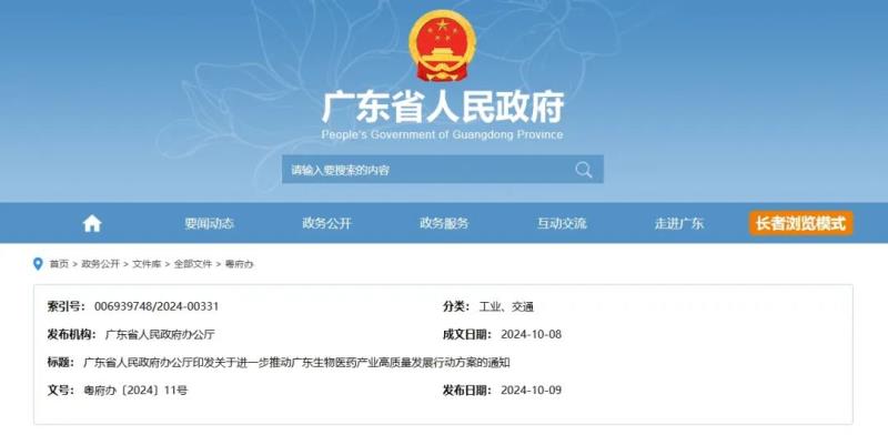 10月9日,廣東省人民政府發(fā)布《關(guān)于進(jìn)一步推動廣東生物醫(yī)藥產(chǎn)業(yè)高質(zhì)量發(fā)展的行動方案》(以下簡稱《方案》),其中提到,力爭到2027年,廣東省生物醫(yī)藥與健康產(chǎn)業(yè)集群規(guī)模超萬億元,規(guī)上醫(yī)藥工業(yè)規(guī)模超5000億元?!斗桨浮啡膬?nèi)容如下: