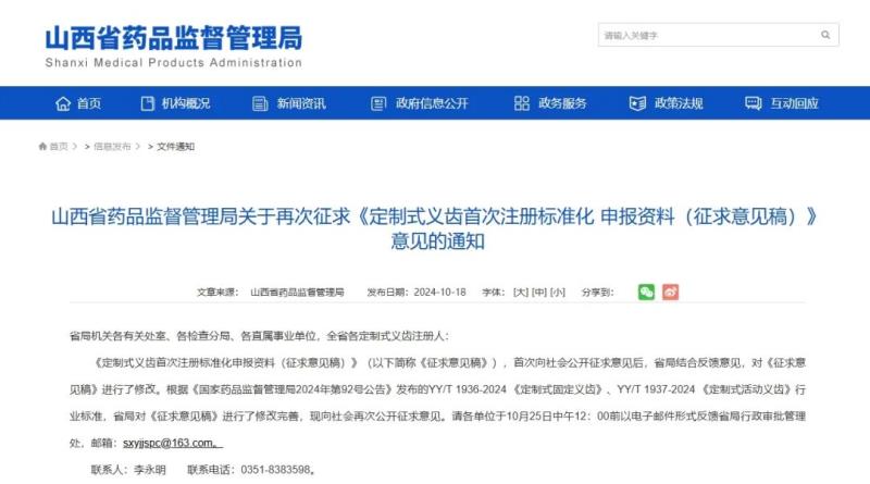 近日,山西省藥監(jiān)局在原有《定制式義齒首次注冊標準化申報資料(征求意見稿)》基礎(chǔ)上進行修改完善,附件共包括首次注冊申報資料及要求、符合性聲明、風險分析資料、產(chǎn)品技術(shù)要求、說明書及標簽樣稿等,并再次向社會公開征求意見。