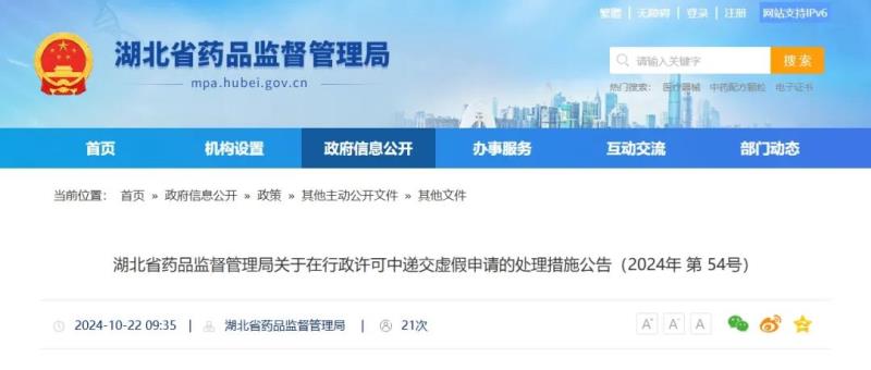 10月22日,湖北省藥監(jiān)局發(fā)布《關(guān)于在行政許可中遞交虛假申請的處理措施公告》,其中提到: