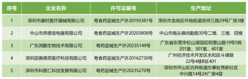 11月6日,廣東藥監(jiān)局發(fā)布通告稱,按照《醫(yī)療器械監(jiān)督管理條例》《醫(yī)療器械生產監(jiān)督管理辦法》有關規(guī)定,根據(jù)企業(yè)申請,該局已于依法注銷注銷深圳市康時醫(yī)療器械有限公司、深圳因賽德思醫(yī)療科技有限公司等5家企業(yè)的《醫(yī)療器械生產許可證》,具體明細如下: