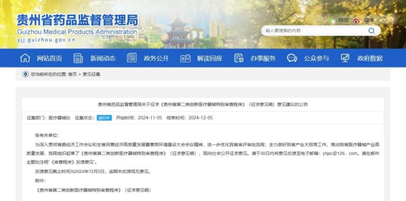 近日,貴州省藥監(jiān)局發(fā)布《貴州省第二類創(chuàng)新醫(yī)療器械特別審查程序》(征求意見稿)(以下簡稱《程序》),并向社會公開征求意見。