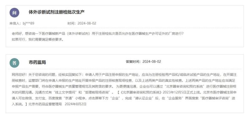 根據(jù)北京市藥監(jiān)局的答復(fù),申請人用于產(chǎn)品注冊申報(bào)的生產(chǎn)地址,應(yīng)當(dāng)為注冊檢驗(yàn)用產(chǎn)品和/或臨床試驗(yàn)產(chǎn)品的生產(chǎn)地址,在開展注冊核查時(shí),監(jiān)管部門將在申請人申報(bào)的生產(chǎn)地址開展申報(bào)產(chǎn)品的注冊核查現(xiàn)場檢查,以及上述兩類產(chǎn)品的真實(shí)性核查。上述兩類產(chǎn)品的生產(chǎn)地址應(yīng)當(dāng)滿足申報(bào)產(chǎn)品生產(chǎn)需要,符合醫(yī)療器械生產(chǎn)質(zhì)量管理規(guī)范及其附錄的要求。
