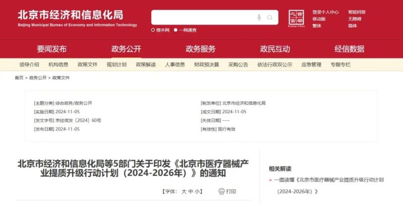 近日,北京市經(jīng)濟和信息化局、北京市藥品監(jiān)督管理局等5部門聯(lián)合制定了《北京市醫(yī)療器械產(chǎn)業(yè)提質(zhì)升級行動計劃(2024-2026年)》(以下簡稱《行動計劃》),并予以發(fā)布。