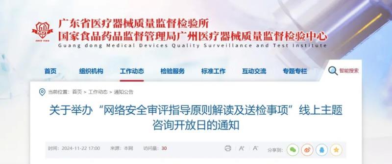 近日,廣東省醫(yī)療器械質(zhì)量監(jiān)督檢驗(yàn)所官網(wǎng)發(fā)布通知,定于11月27日(周三)舉辦“網(wǎng)絡(luò)安全審評(píng)指導(dǎo)原則解讀及送檢事項(xiàng)”線上主題咨詢開(kāi)放日活動(dòng),具體時(shí)間及參會(huì)方式如下: