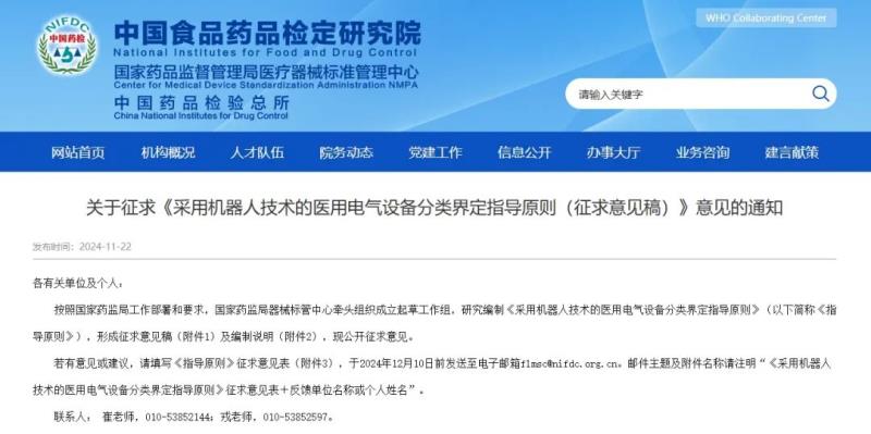 近日,國家藥監(jiān)局醫(yī)療器械標(biāo)準(zhǔn)管理中心發(fā)布《采用機(jī)器人技術(shù)的醫(yī)用電氣設(shè)備分類界定指導(dǎo)原則(征求意見稿)》(以下簡稱《指導(dǎo)原則》),并向社會公開征求意見。