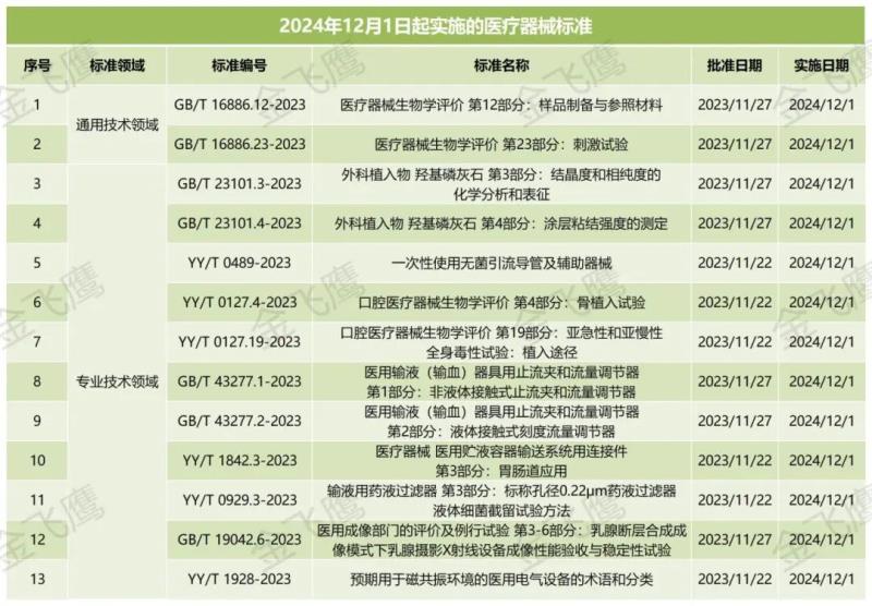 轉(zhuǎn)眼就到2024年最后一個(gè)月了,在本月第一個(gè)工作日,按咱們的老規(guī)矩,又來跟大家盤點(diǎn)一波醫(yī)療器械標(biāo)準(zhǔn)實(shí)施動態(tài):自2024年12月1日起正式實(shí)施的共有13項(xiàng)醫(yī)療器械標(biāo)準(zhǔn),這其中包括2項(xiàng)GB/T 16886系列標(biāo)準(zhǔn):GB/T 16886.12-2023《醫(yī)療器械生物學(xué)評價(jià) 第12部分:樣品制備與參照材料》、GB/T 16886.23-2023《醫(yī)療器械生物學(xué)評價(jià) 第23部分:刺激試驗(yàn)》,所有標(biāo)準(zhǔn)實(shí)施明細(xì)如下:
