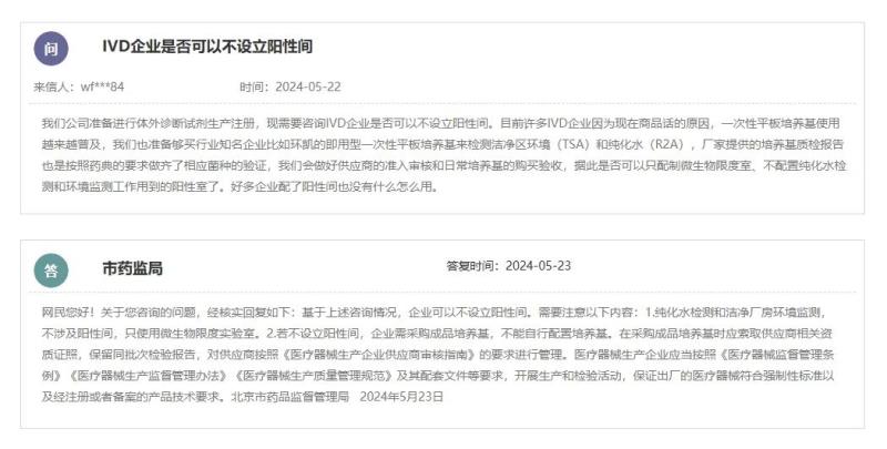 根據(jù)北京市藥監(jiān)局的答復,此情形下企業(yè)可以不設(shè)立陽性間。需要注意以下內(nèi)容:1.純化水檢測和潔凈廠房環(huán)境監(jiān)測,不涉及陽性間,只使用微生物限度實驗室。2.若不設(shè)立陽性間,企業(yè)需采購成品培養(yǎng)基,不能自行配置培養(yǎng)基。在采購成品培養(yǎng)基時應索取供應商相關(guān)資質(zhì)證照,保留同批次檢驗報告,對供應商按照《醫(yī)療器械生產(chǎn)企業(yè)供應商審核指南》的要求進行管理。醫(yī)療器械生產(chǎn)企業(yè)應當按照《醫(yī)療器械監(jiān)督管理條例》《醫(yī)療器械生產(chǎn)監(jiān)督管理辦法》《醫(yī)療器械生產(chǎn)質(zhì)量管理規(guī)范》及其配套文件等要求,開展生產(chǎn)和檢驗活動,保證出廠的醫(yī)療器械符合強制性標準以及經(jīng)注冊或者備案的產(chǎn)品技術(shù)要求。