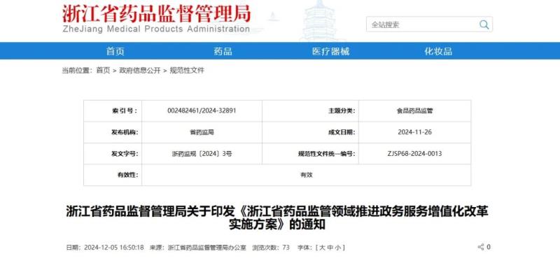 12月5日,浙江省藥監(jiān)局發(fā)布《浙江省藥品監(jiān)管領(lǐng)域推進(jìn)政務(wù)服務(wù)增值化改革實(shí)施方案》(以下簡(jiǎn)稱(chēng)《實(shí)施方案》),以縱深推進(jìn)藥品監(jiān)管領(lǐng)域政務(wù)服務(wù)增值化改革。《實(shí)施方案》從“審評(píng)審批再提速、監(jiān)管模式再提效、服務(wù)機(jī)制再提質(zhì)、保障支撐再提標(biāo)”四大部分,共計(jì)提出18條具體舉措。