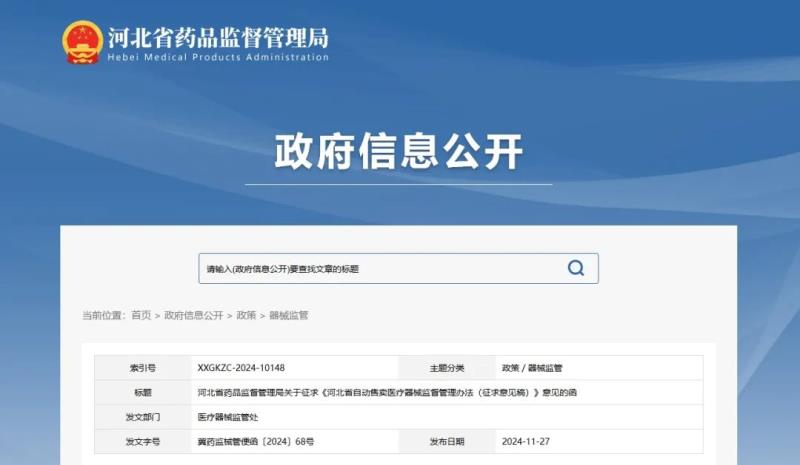 近日,河北省藥監(jiān)局發(fā)布《河北省自動(dòng)售賣醫(yī)療器械監(jiān)督管理辦法(征求意見稿)》(以下簡稱《辦法》),并向社會(huì)公開征求意見。